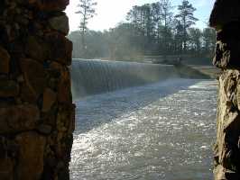 Starr's Mill did not have a paddle wheel, it turned using a turbine mounted near the lake. We got there early in the morning, and got a great view of the mist coming off of the water.