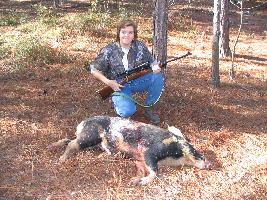 Holds the Heart made the shot on a nice trophy boar. She took part in dressing the animal and making sure that she would have plenty of food to store up for her hungry family.