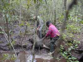 This time it was Mike's turn to go out. White Owl (Mike) wanted to harvest a small boar for feeding his family. The boar that he shot was mostly hidden by water. He thought he was taking a small hog. He ended up taking a nice trophy pig. It was a very nice silver Russian Wild Boar. Although it was larger than White Owl wanted, he said that it tasted just fine. His family is well provided for this winter.