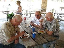 We came, we saw, we ate. What else can you say. It is always great to see old friends. I am happy that we have this time each year to check in with each other, and it makes me especially happy when we have someone show up that hasn't been in a while. We actually had one family that had never come to this annual picnic. It had been close to 40 years since I had seen Mrs. Betty Fillingim. Leon had passed away last year. Leon was the choir director when I first joined the chancel choir those many years ago. I hadn't seen Karen in a while, or Randy, or Leslie. There were others there, but we especially missed those that couldn't be there. Some of our regulars were missing too. I wonder how big the group would be if we all came on the same year. Anyway here's the proof.